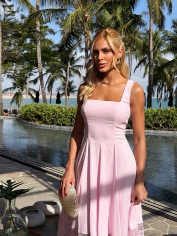 Um vestido encantador que une frescor, romantismo e elegância para o alto verão.