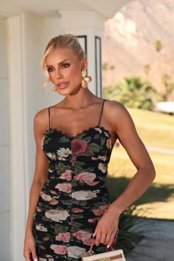 O Vestido Fresh Notte Nera traz o impacto da renda em versão sofisticada e atemporal. Confeccionado em renda preta com desenho floral, possui decote coração estruturado com delicado acabamento rendado no barrado e alças finas ajustadas.