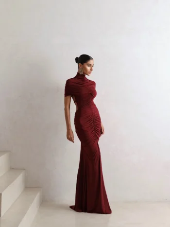 Vestido Longo Marsala Plissado Um vestido que combina leveza, movimento e sofisticação