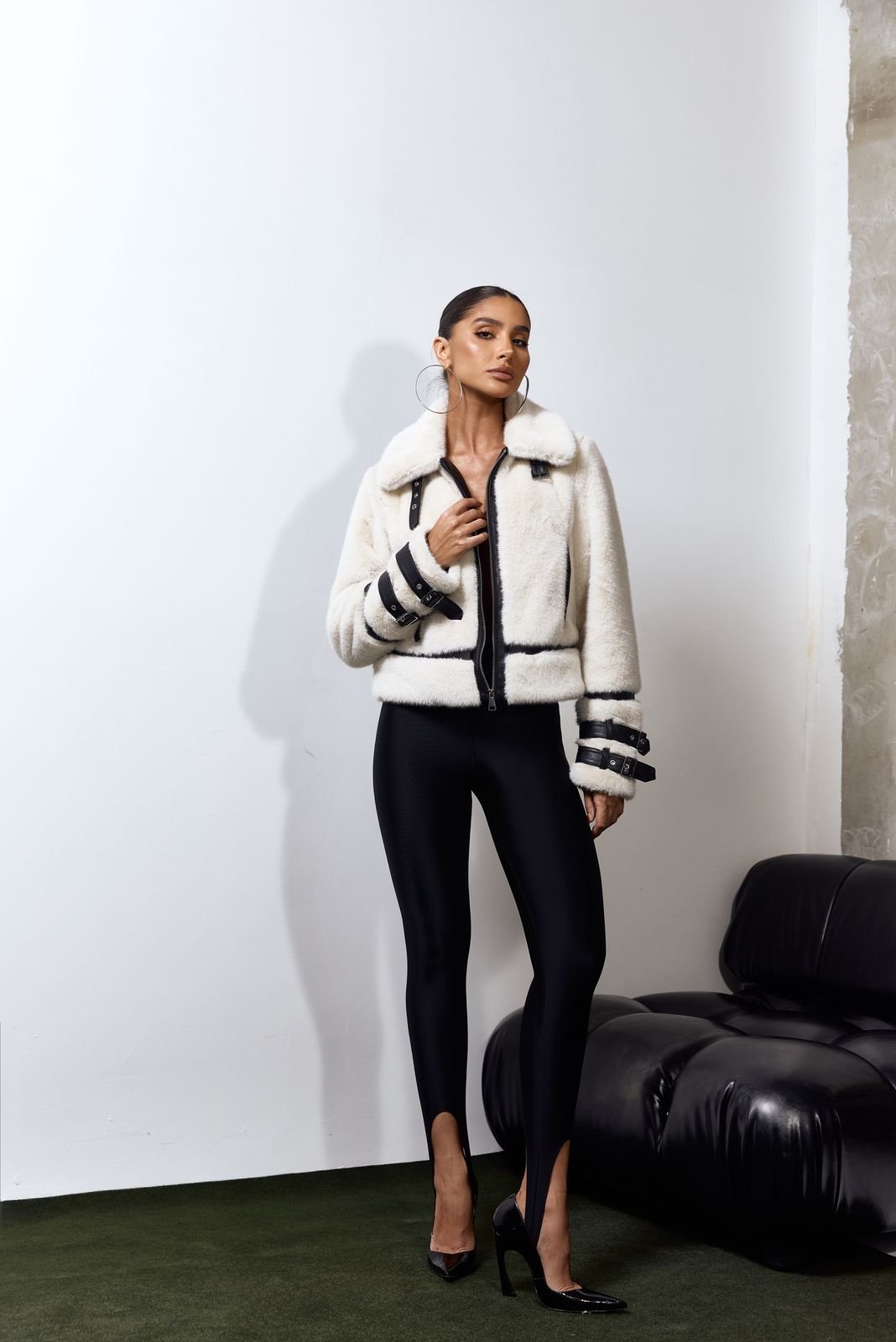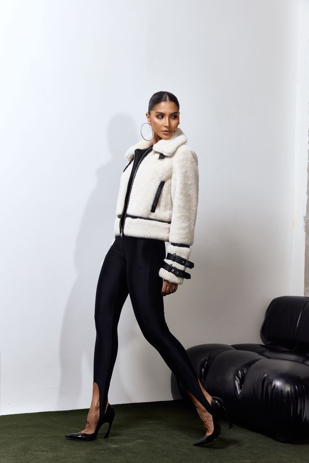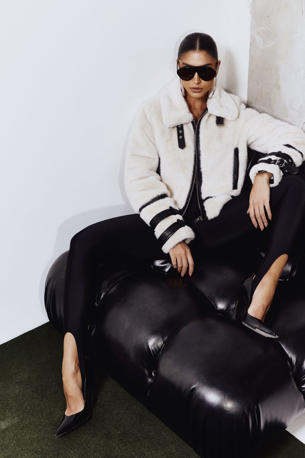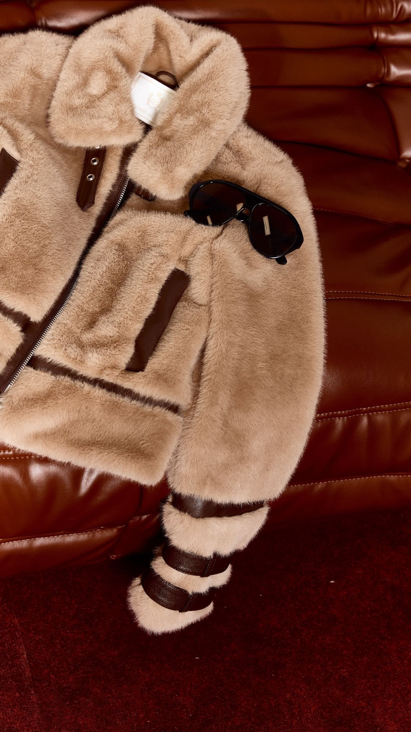 Sofisticação e atitude em uma única peça. O casaco de pelo possui textura macia e acabamento impecável, trazendo um toque de luxo e elegância para os dias mais frios. O modelo apresenta recortes e detalhes em couro, que criam contraste moderno e valorizam o design da peça.