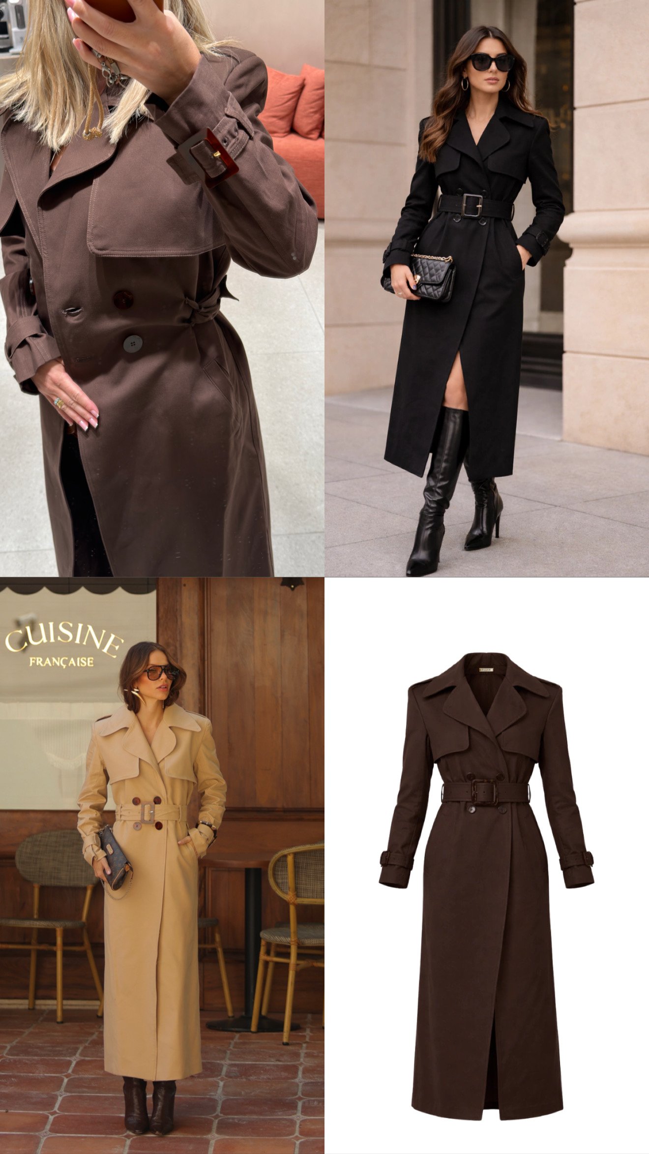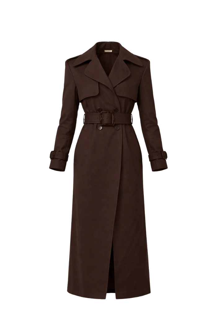 Trench Coat – Elegância Atemporal O trench coat é a peça-chave que transforma qualquer look com sofisticação imediata. Clássico e imponente, ele traz uma modelagem estruturada que valoriza a silhueta, com caimento impecável e acabamento refinado.