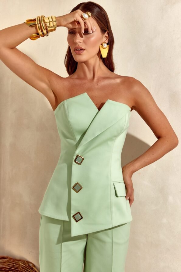 O Conjunto Pietra é o epítome de elegância atemporal, um verdadeiro clássico que merece um lugar de destaque no guarda-roupa de toda mulher. O blazer, com ombreiras altas e marcadas, oferece um toque de poder e sofisticação, enquanto o decote acentuado com gola smoking confere um ar de sensualidade discreta