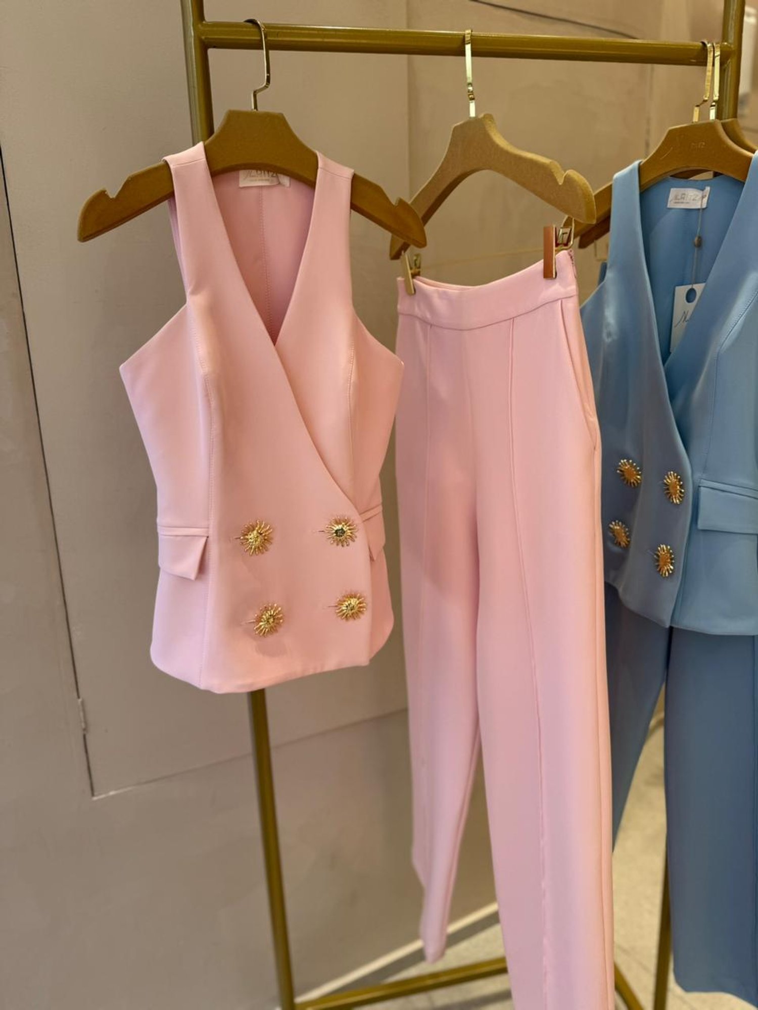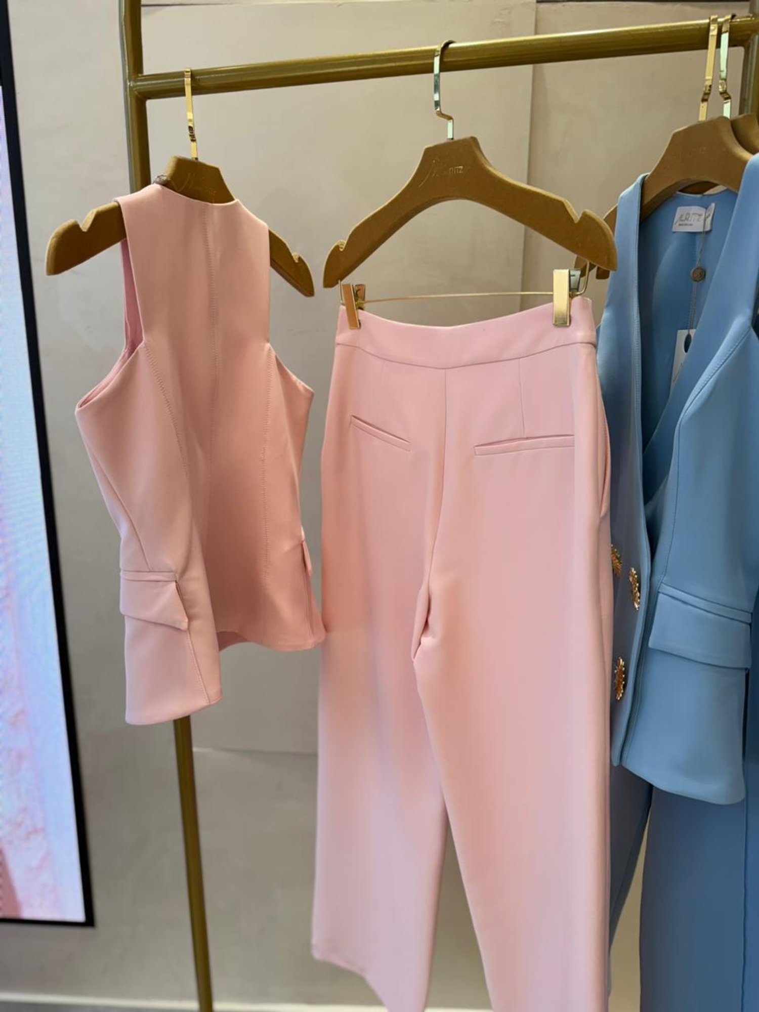 A saia tem cós alto e bordados exclusivos com temática “universo”, o zíper é de metal na costa.