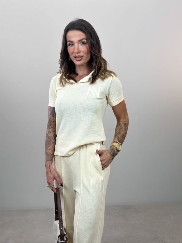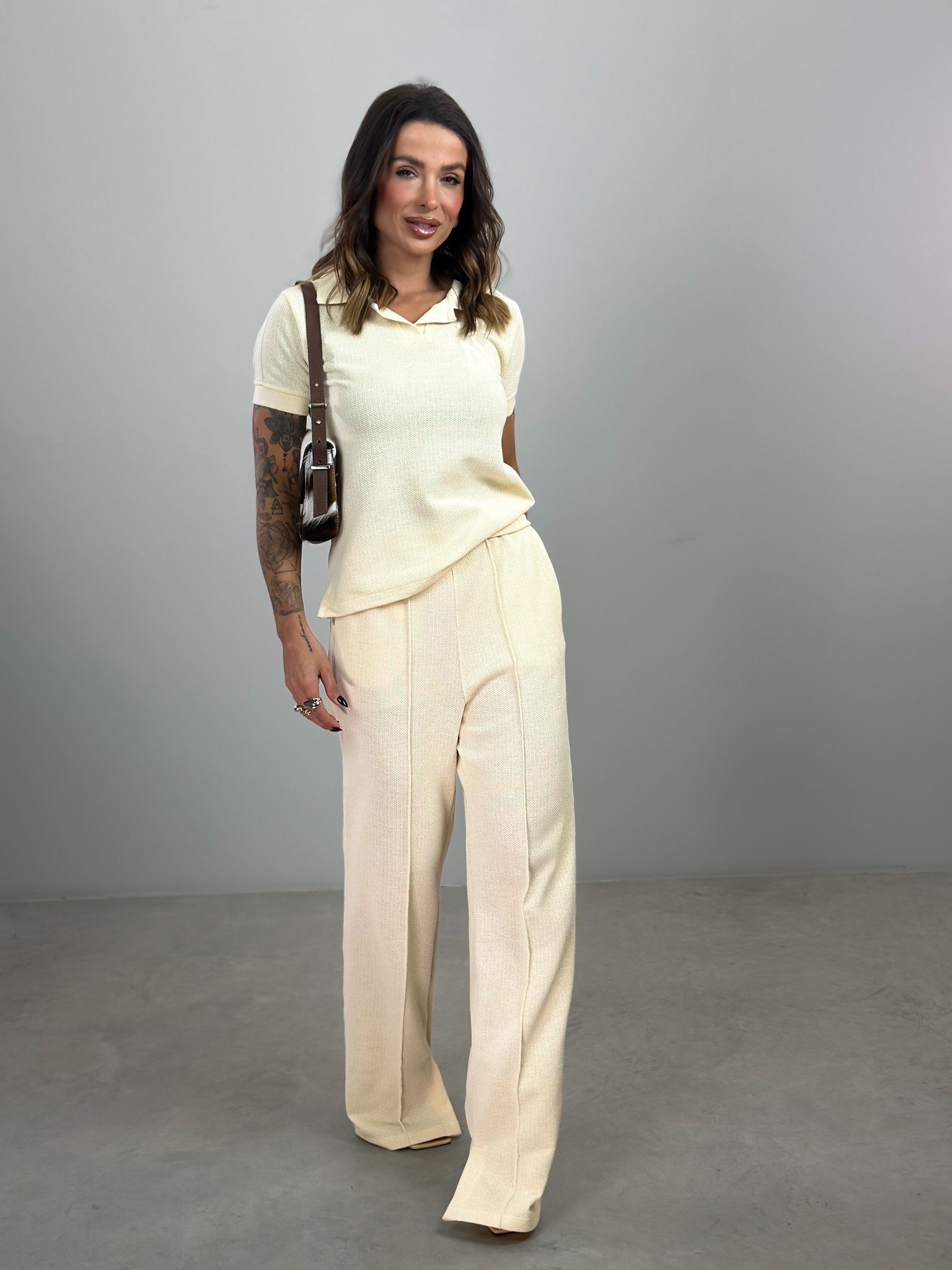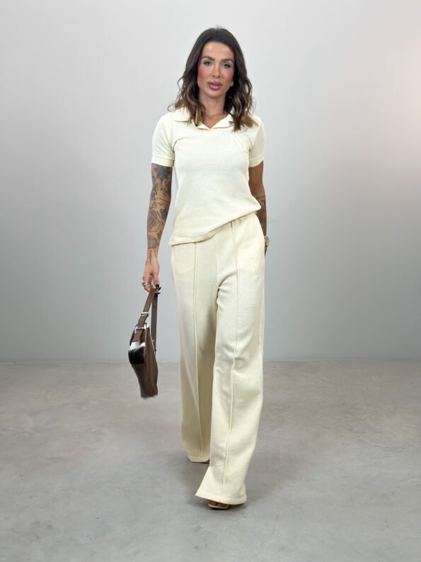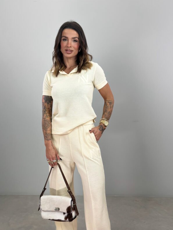 Um conjunto leve e sofisticado, perfeito para quem busca praticidade sem abrir mão do estilo. Confeccionado em tecido estruturado e confortável, ele une modernidade à elegância em cada detalhe.