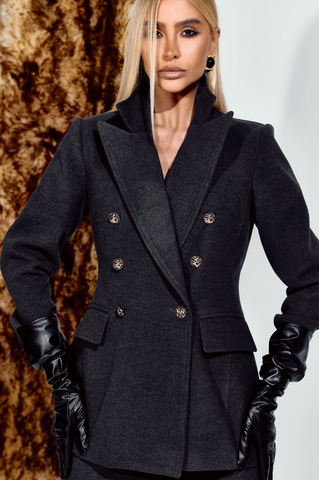 O Conjunto Pietra é o epítome de elegância atemporal, um verdadeiro clássico que merece um lugar de destaque no guarda-roupa de toda mulher. O blazer, com ombreiras altas e marcadas, oferece um toque de poder e sofisticação, enquanto o decote acentuado com gola smoking confere um ar de sensualidade discreta