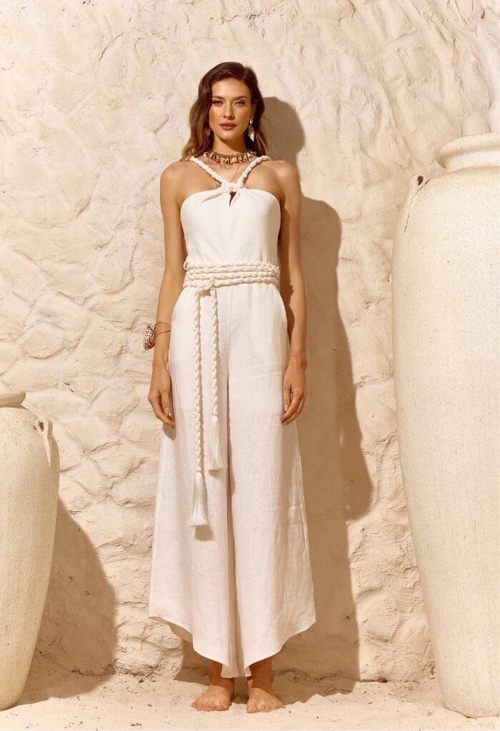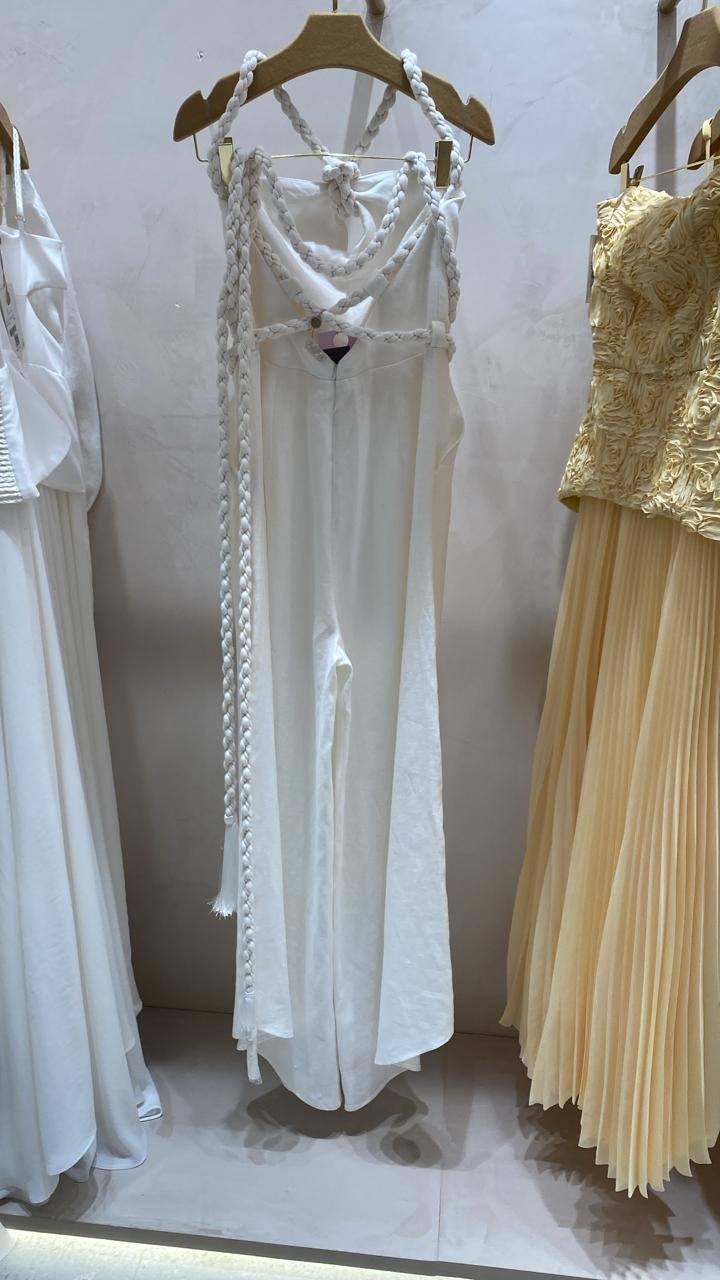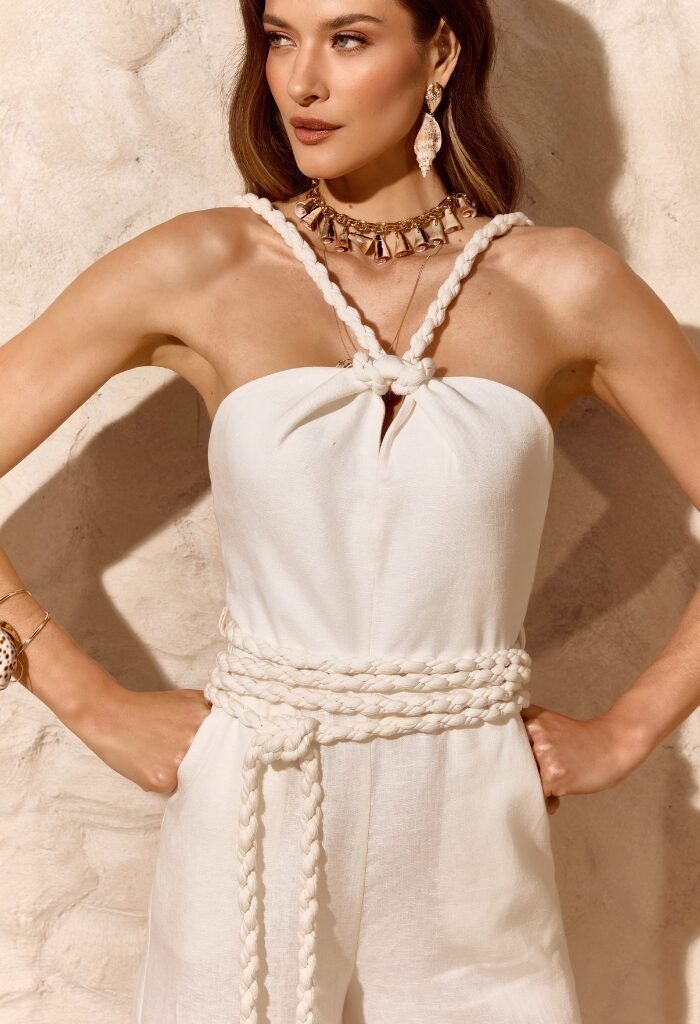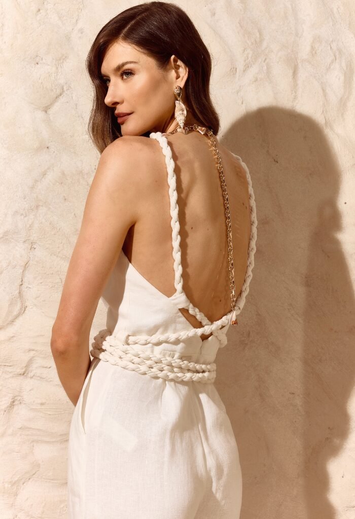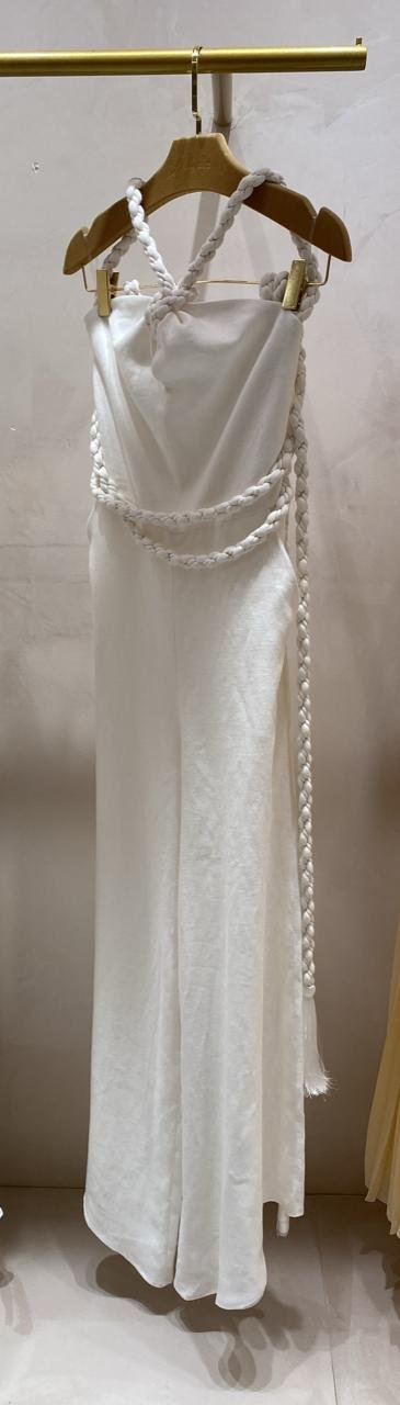 Vestido curto em crepe off-white: tem uma modelagem cut-out na cintura Limonada Pink