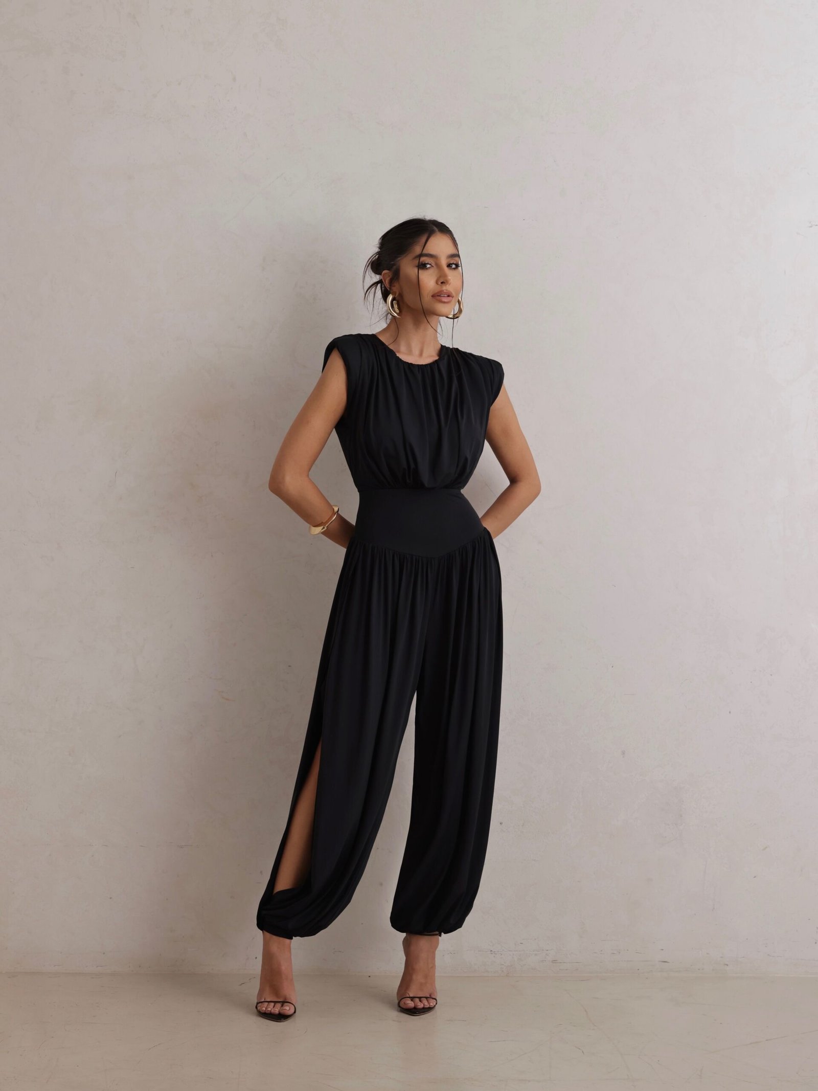 Um verdadeiro encontro entre conforto e sofisticação. O Macacão Aladin é uma peça única e marcante, com caimento impecável e um toque de modernidade inspirado no estilo oriental.