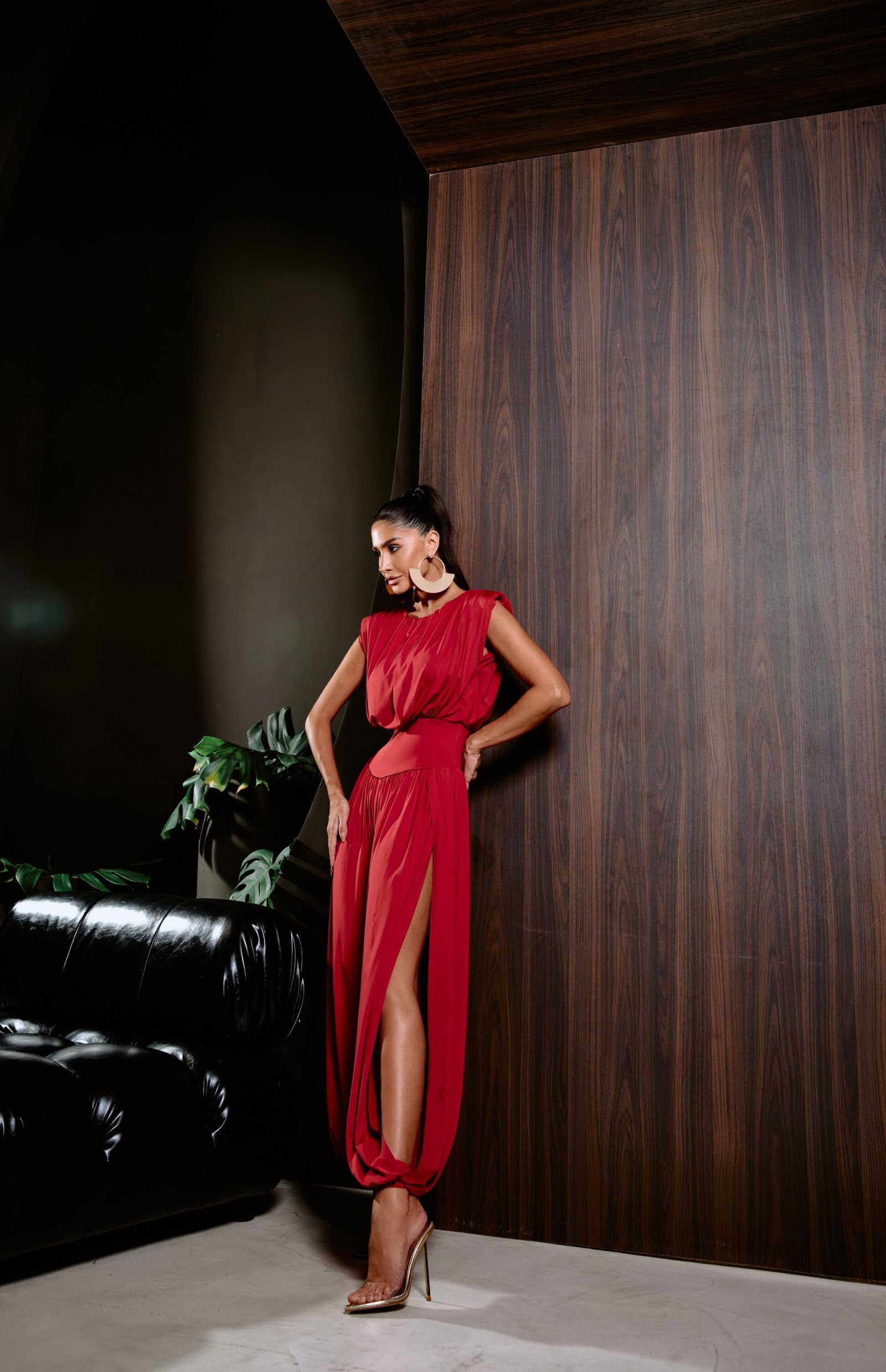 Macacão Fenda Lateral Elegância e conforto se unem em uma peça marcante. O macacão é confeccionado em malha leve e fluida, com caimento impecável e toque suave.