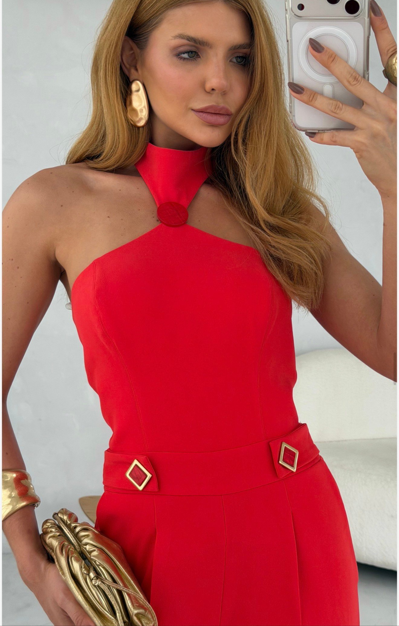 Vestido midi vermelho em crepe: marcante e elegante, o vestido conta com alças largas com aplicação de laços nos ombros e fenda de vestibilidade nas costas. Limonada Pink