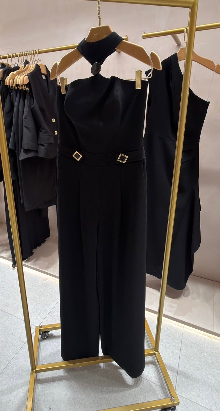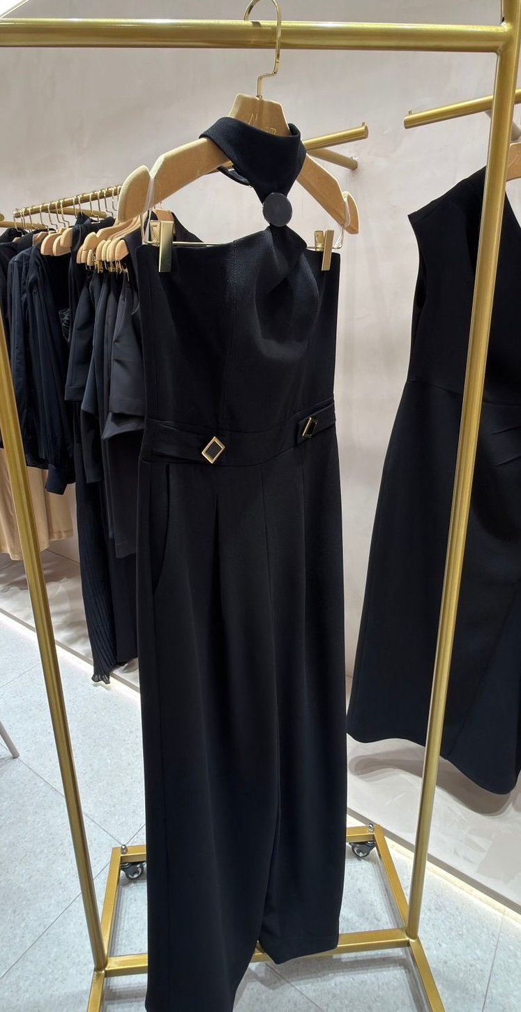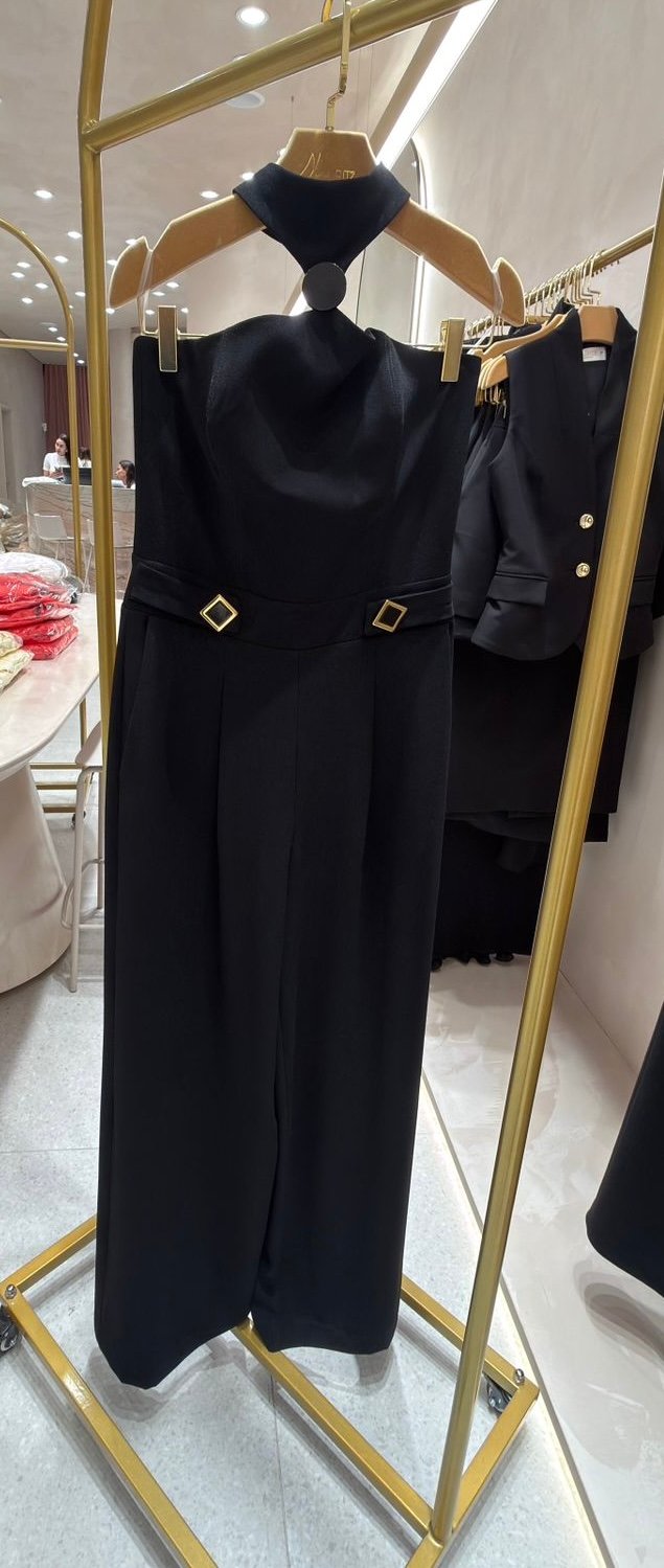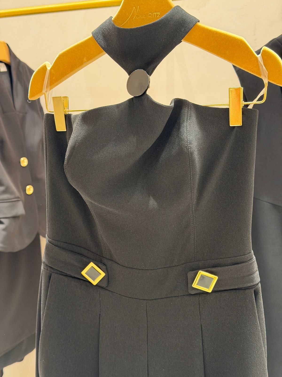 Conjunto de saia de crepe + t-shirt de algodão, ambos na cor preta.