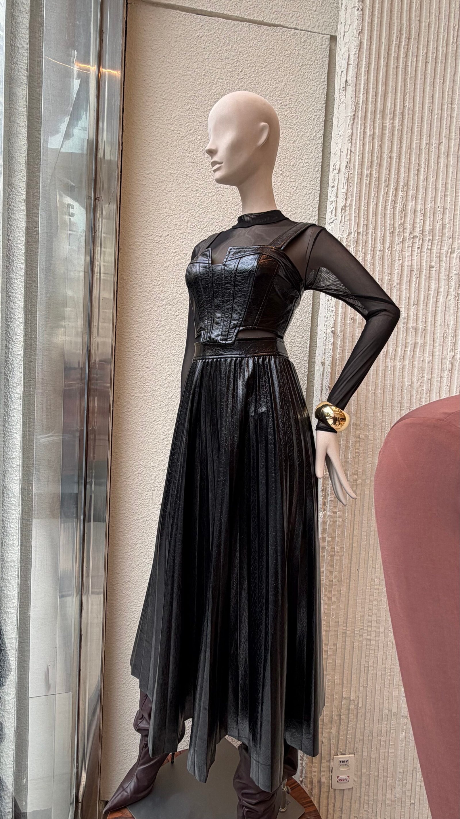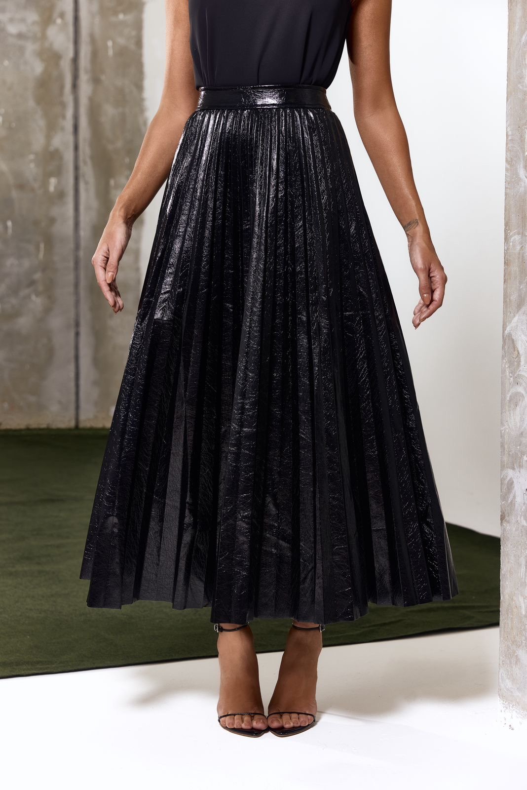 • Saia plissada com brilho sutil