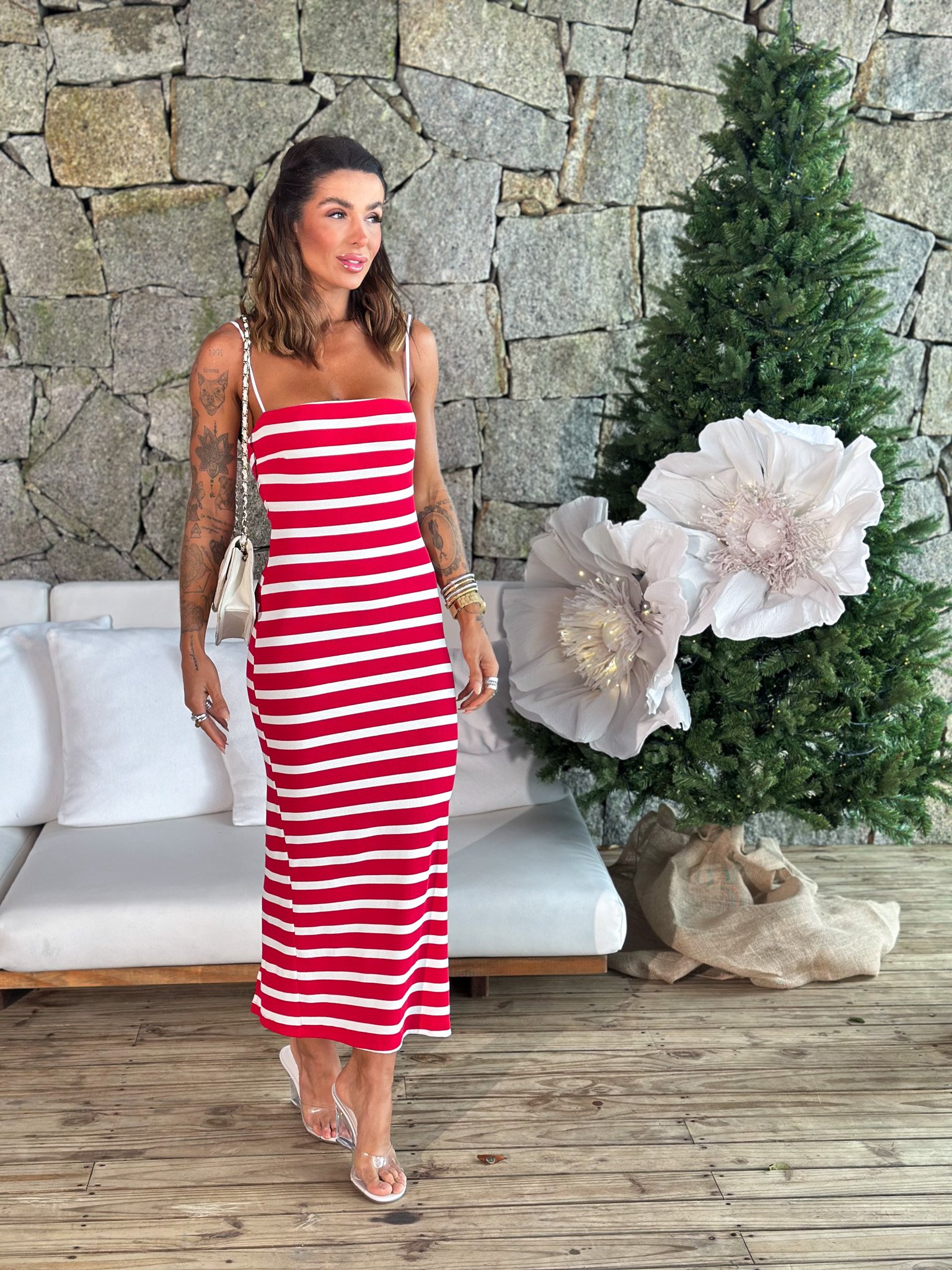 Confeccionado em malha canelada premium, ele valoriza as curvas com conforto, elasticidade e um caimento impecável. As listras em vermelho e branco criam um visual moderno, vibrante e super marcante — perfeito para produções à beira-mar, festas de fim de ano, passeios e todas as ocasiões onde você quer brilhar com elegância descomplicada.