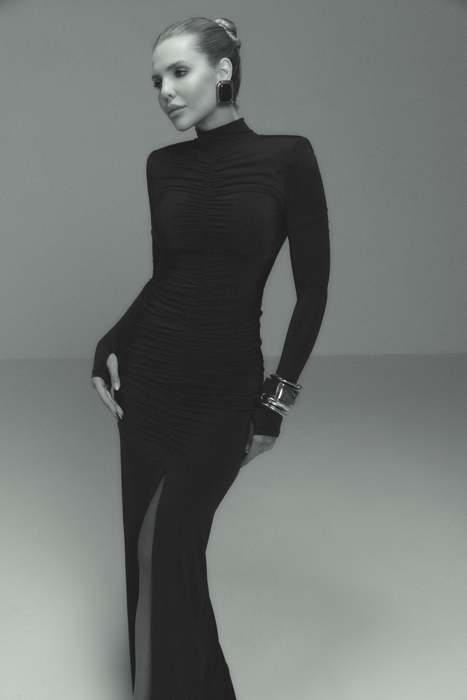 Vestido Manga Longa comm recorte lateral.