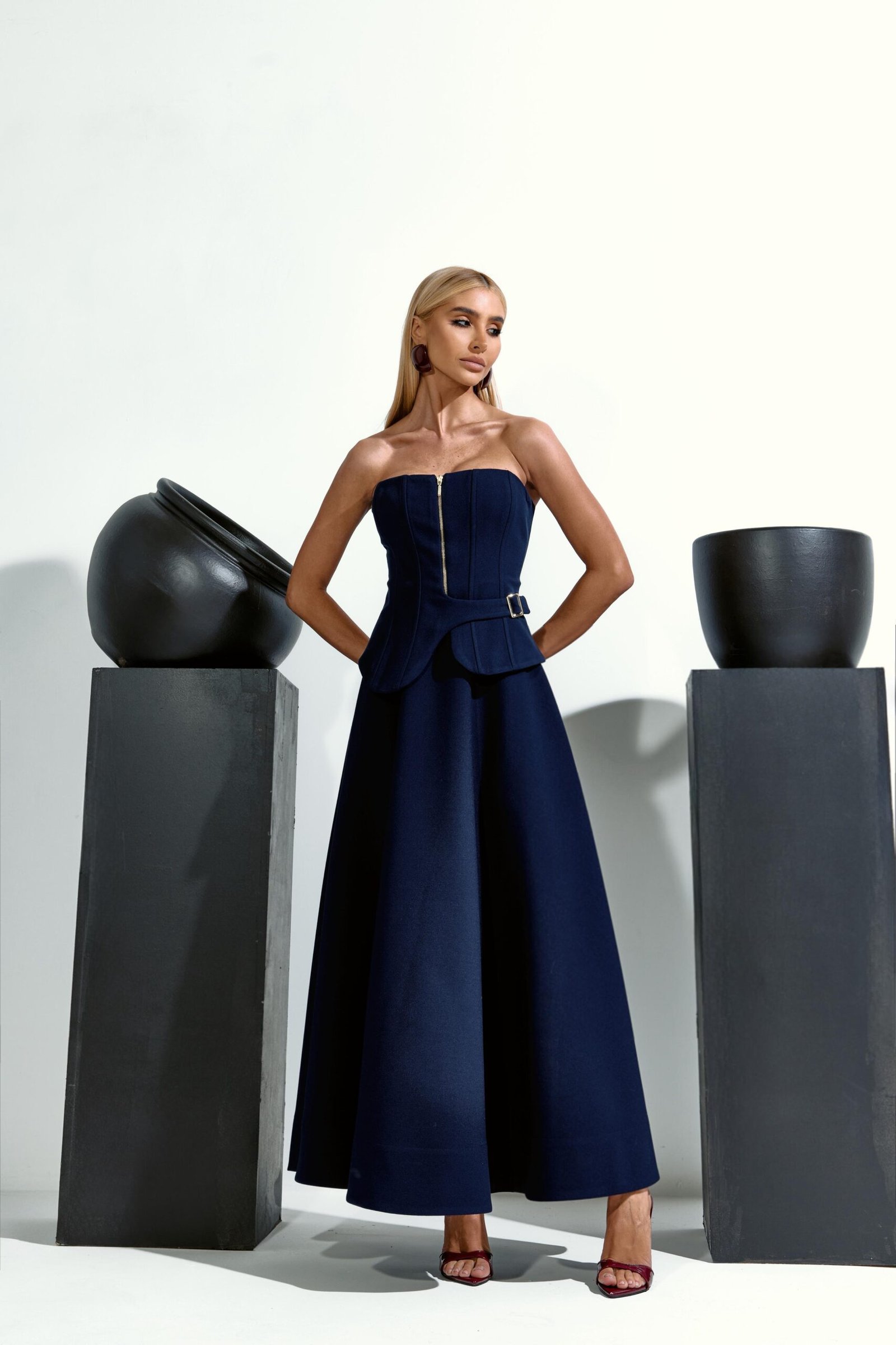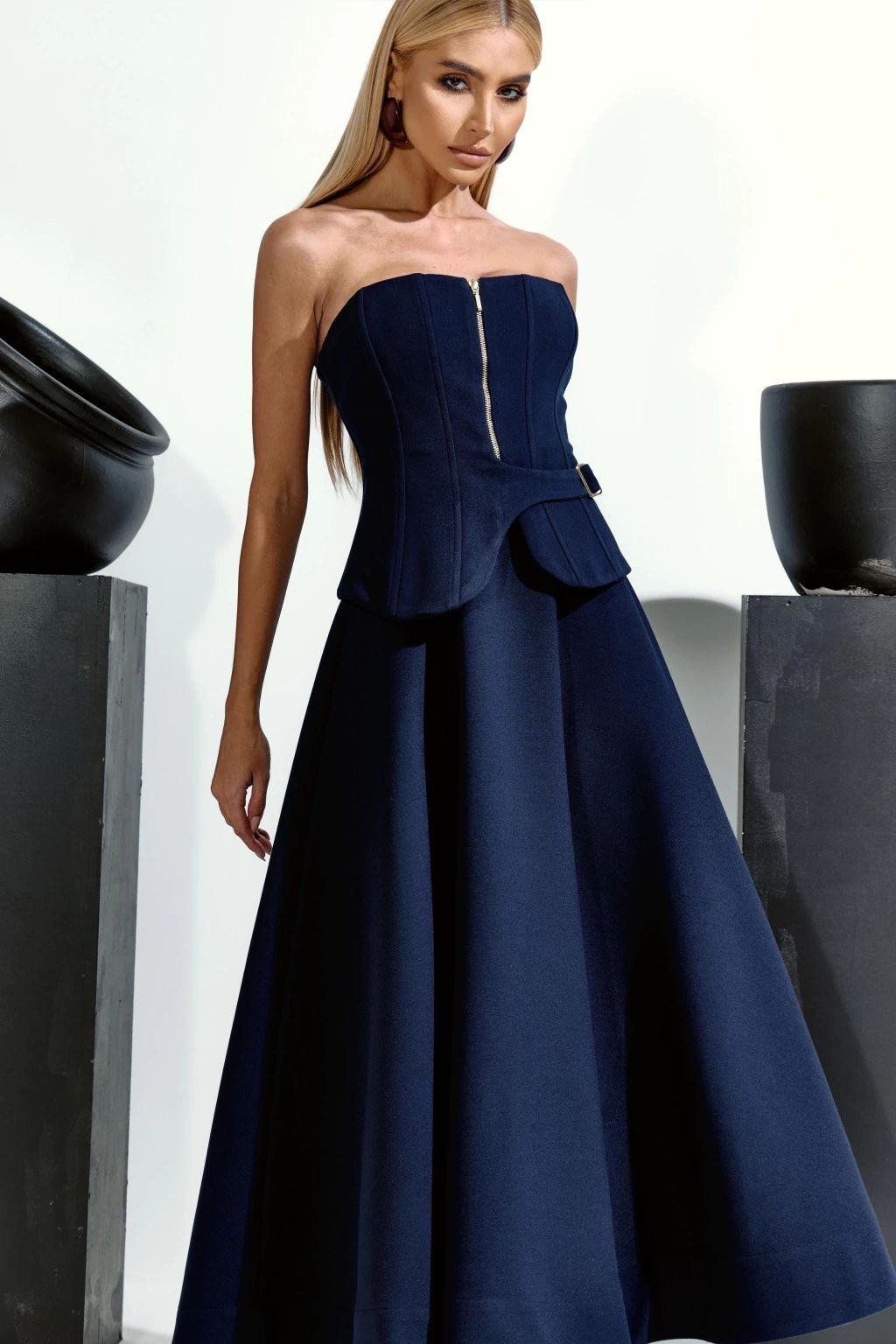 Vestido midi de crepe. Tem modelagem justa com fenda frontal e decote princesa com mangas drapeadas.