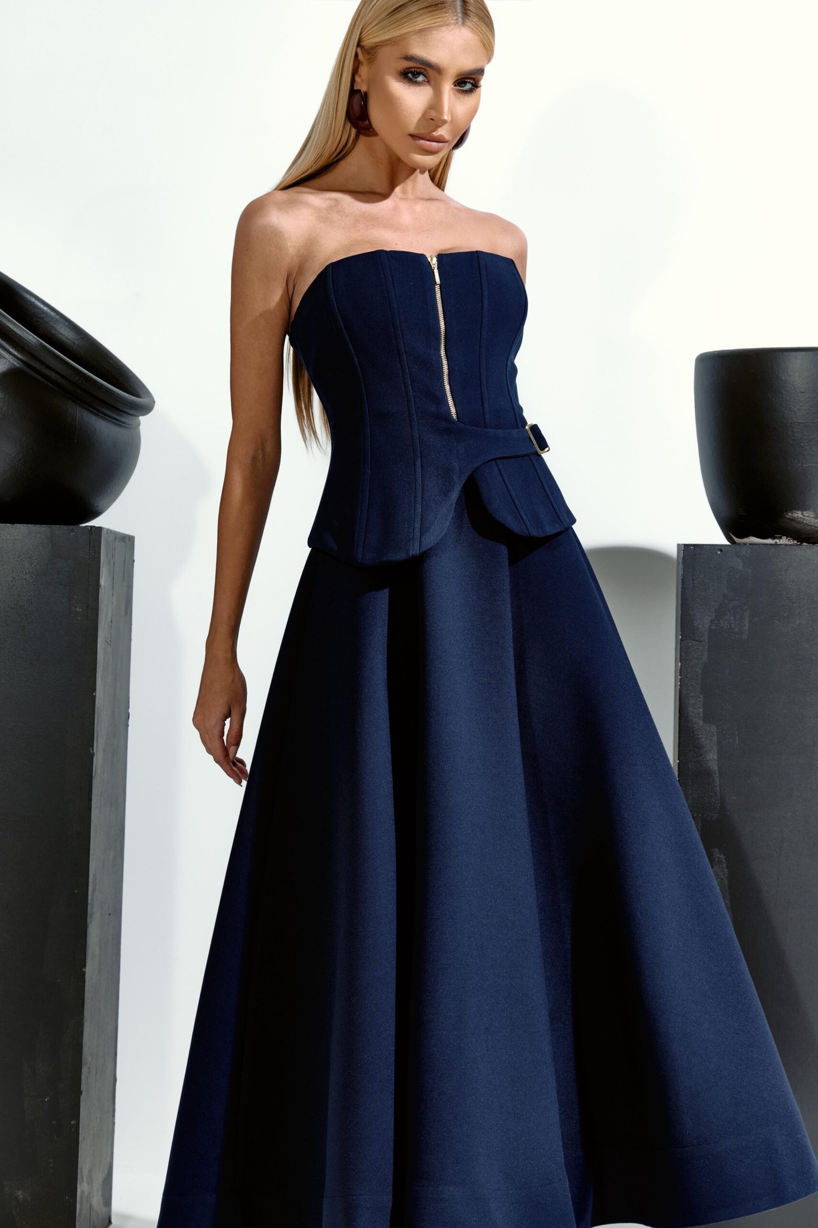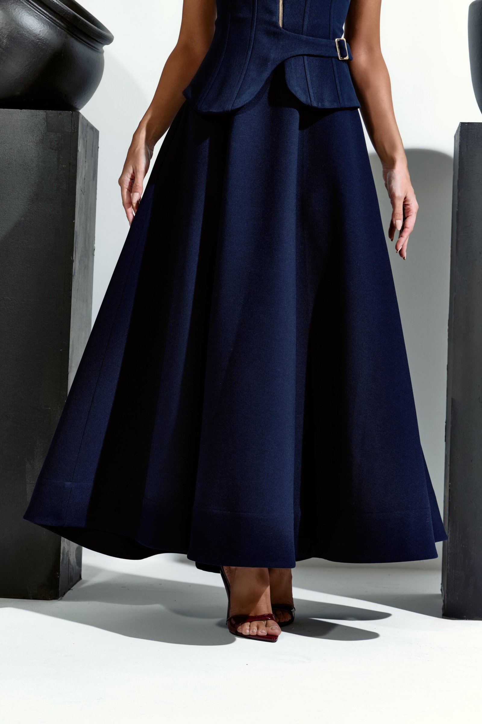 As alças são finas e flexíveis. O bojo é meia taça e na saia tem detalhes com drapeados.