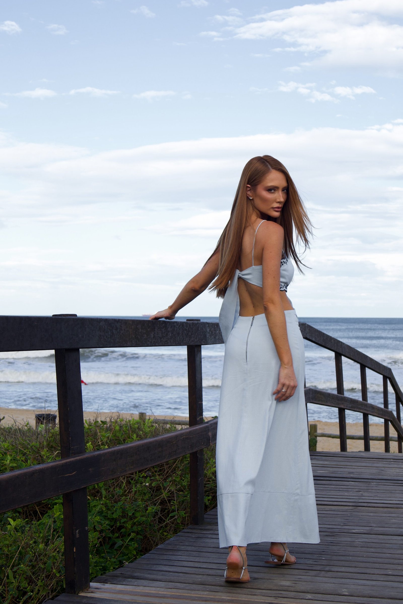 Ideal para dias de praia, sunsets e produções elegantes de férias. Fechamento: Zíper de metal nas costas e amarração
