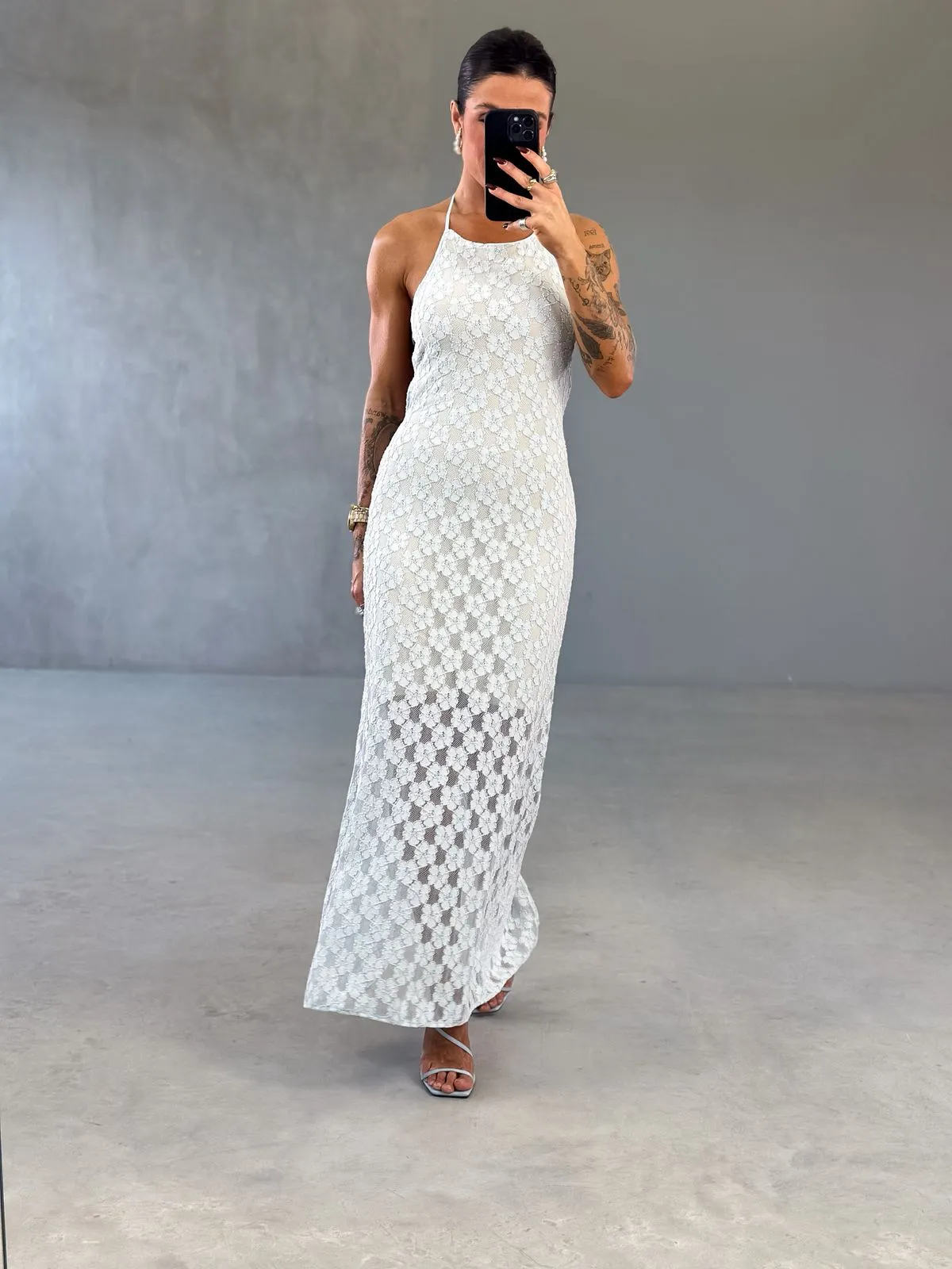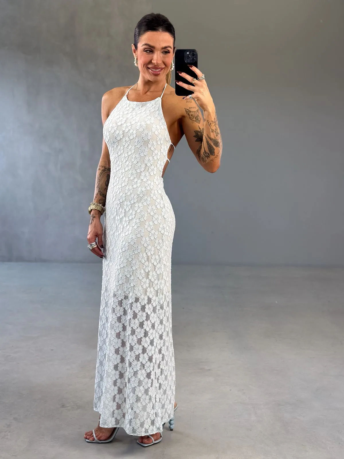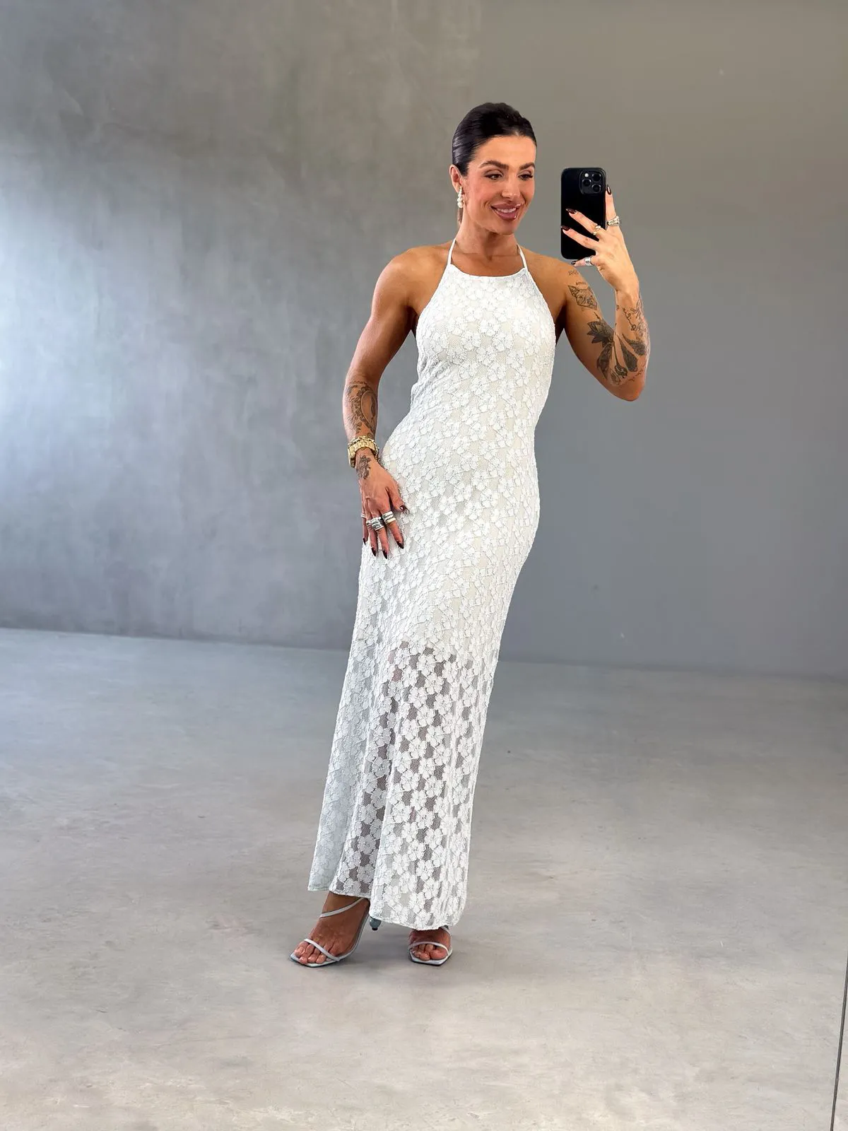 A parte de trás traz decote profundo com amarração e fenda, garantindo charme e conforto ao caminhar. O detalhe de drapeadinho frontal cria um efeito que realça a cintura e proporciona um visual elegante e moderno. Perfeito para eventos, jantares e ocasiões especiais — um look que dispensa esforço e entrega poder!