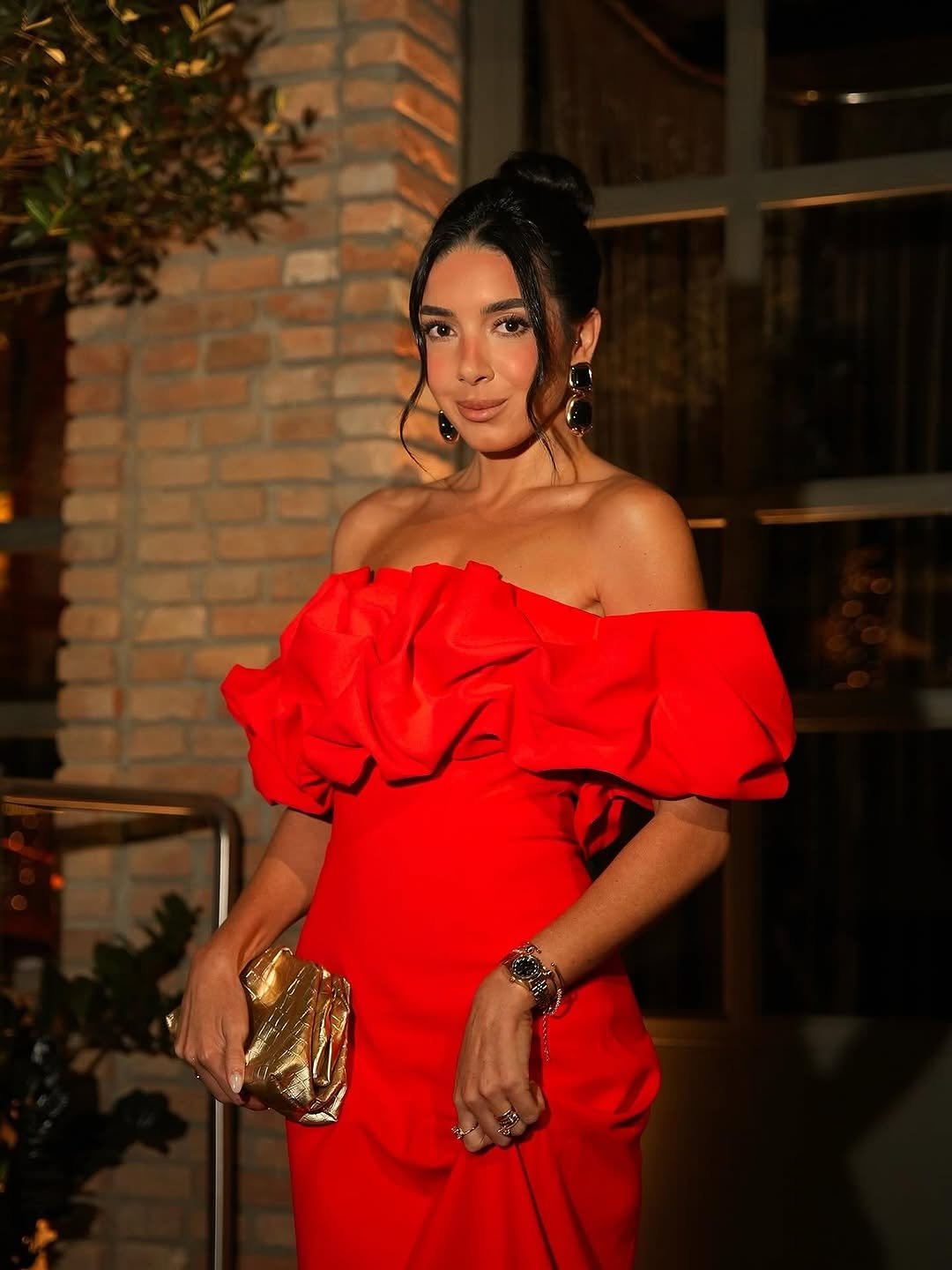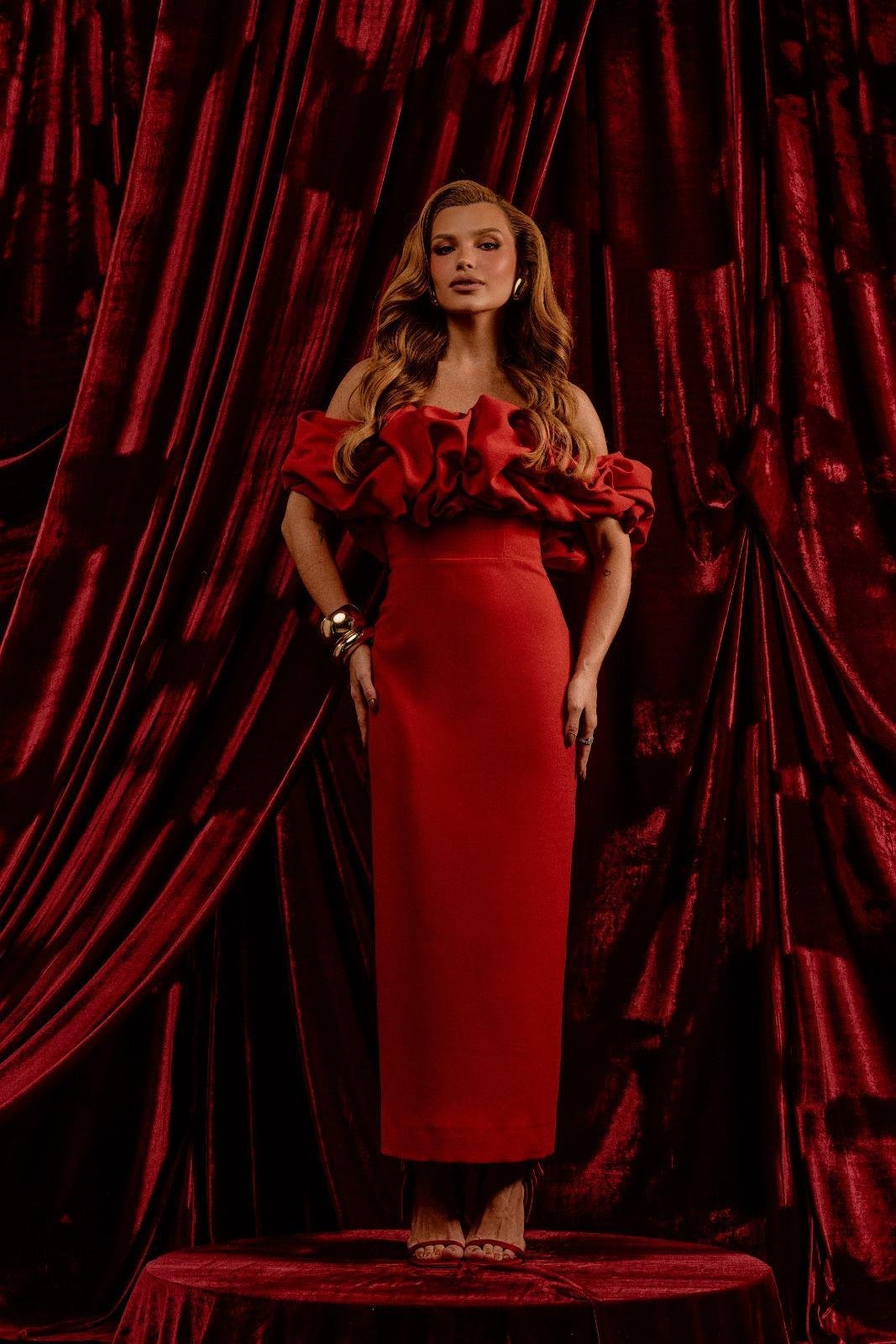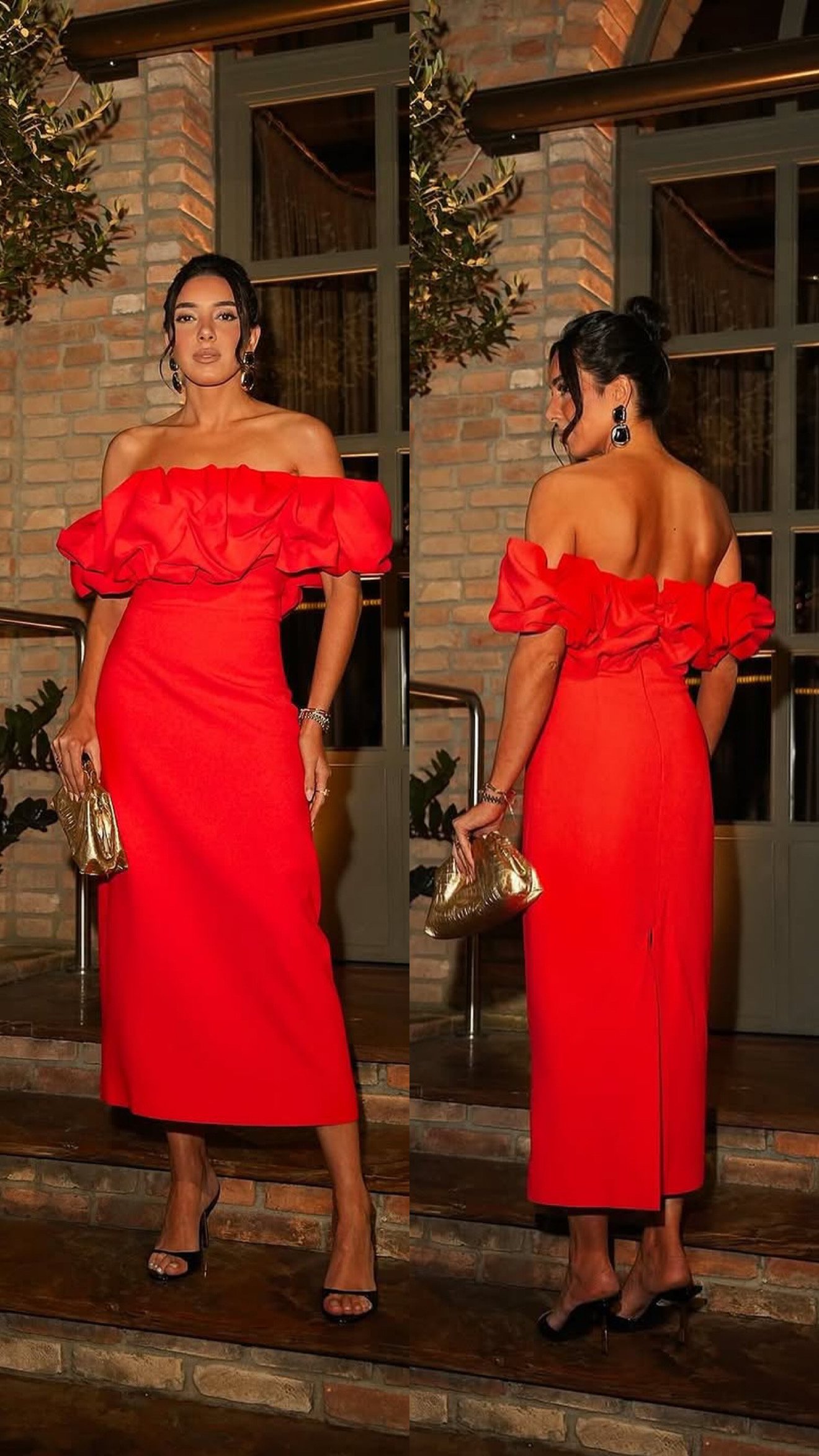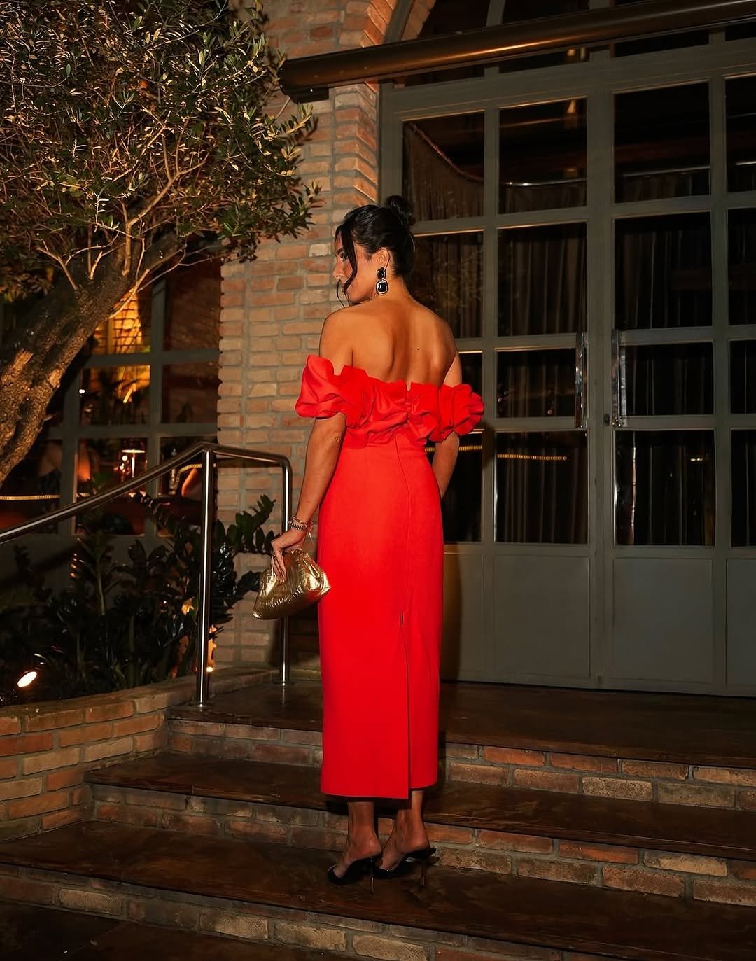 Vesttido Longo com fenda na perna decote ombro a ombro
