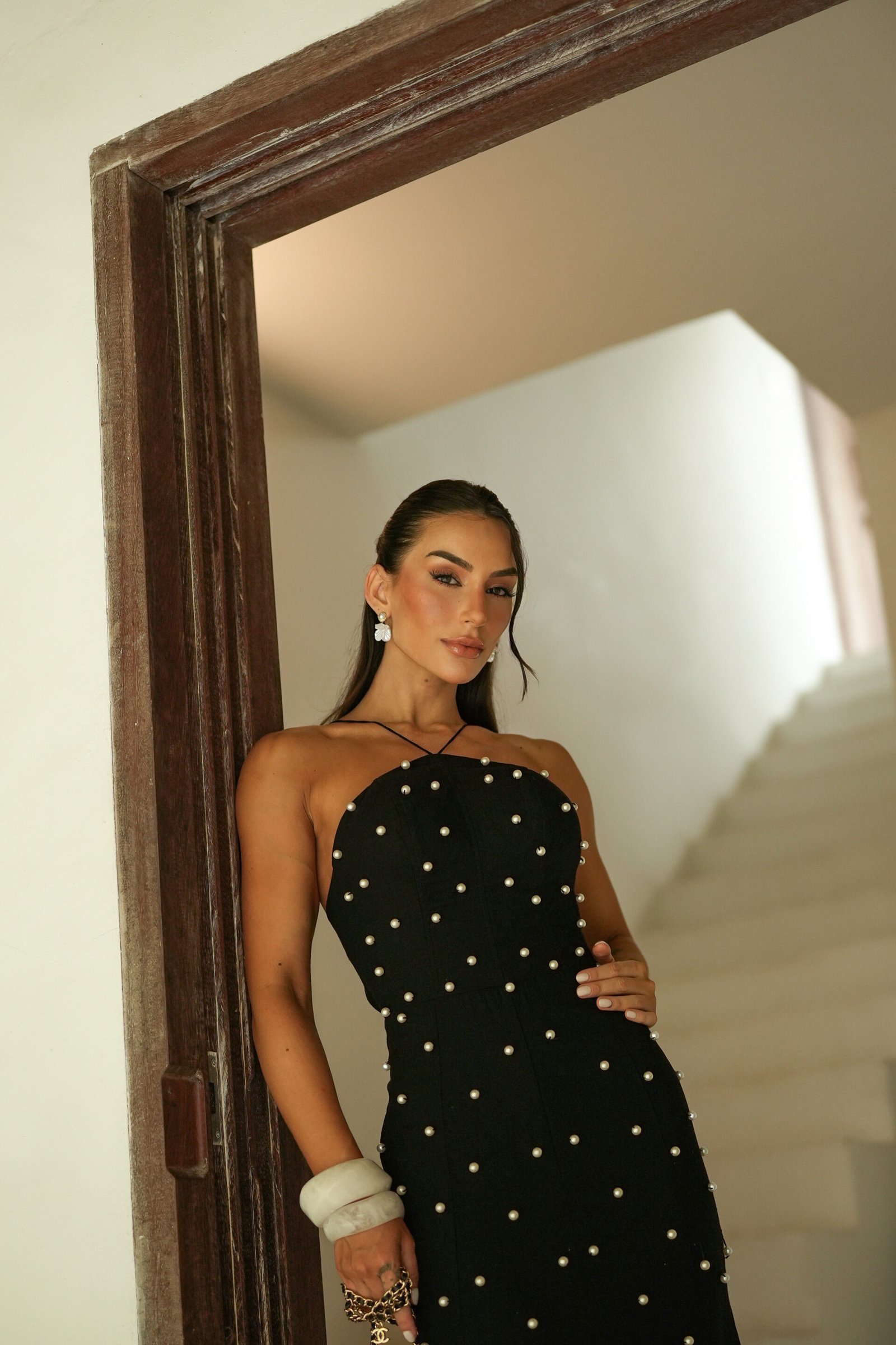 O Vestido chega com aquela energia clássica e irresistível: modelagem longa que alonga a silhueta, decote frente única com alças finas e aplicações que criam um brilho sutil e sofisticado. A parte de trás aberta traz o toque sensual perfeito para as noites de verão — leve, fresh e chic na medida. Um look que vai do jantar ao evento especial com zero esforço e máximo impacto.